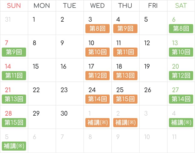 ※受講期間内に完成しなかった方を対象に、各コース修了後、最大2日間の補講を実施します。